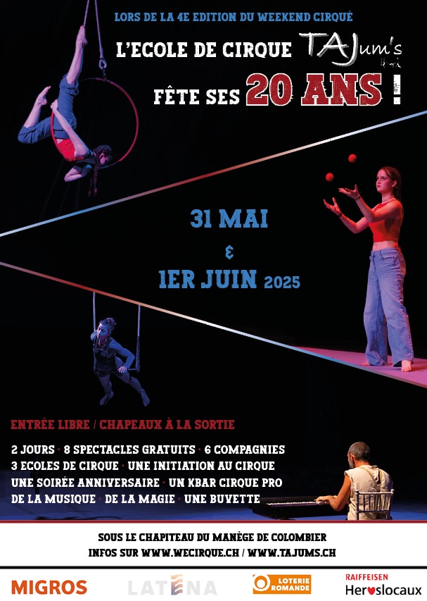 Nous lançons un appel à bénévoles pour la 5e édition du Weekend CirquÉ pour l’installation du site la semaine du 1er au 5 juin, et surtout pour le weekend du 6 et 7 juin. Nous avons une vingtaine de postes de travail, et pensions donc à une trentaine de bénévoles pour pouvoir faire des tournus et que chacun puisse aussi faire des pauses et profiter du weekend et des spectacles.
